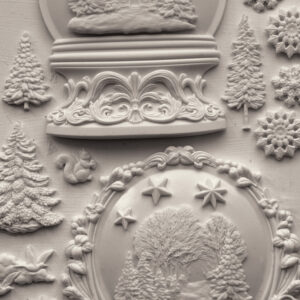 Snow Globes is a 6 x 10 inch BPA free silicone mould. Some of our favorite mediums to use in the moulds are the Iron Orchid Designs Air Dry Clay, Pentart Glass Clear Resin, and Amazing Cast 2 part quick setting resin. But think beyond crafting! These moulds are food safe and work well with the pastry arts. Try fondant or even pie crust to create some edible arts.