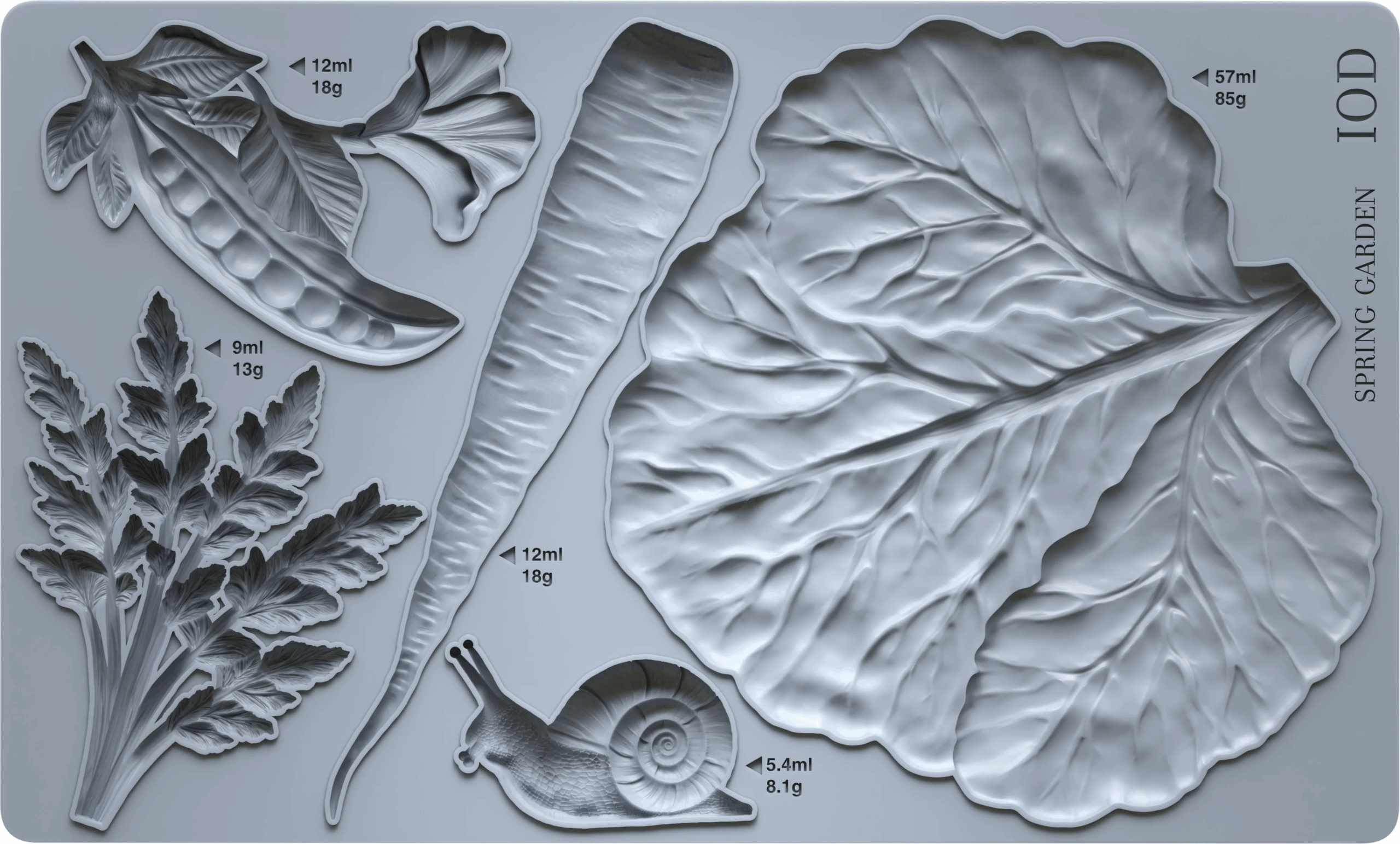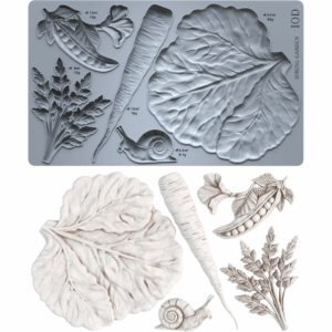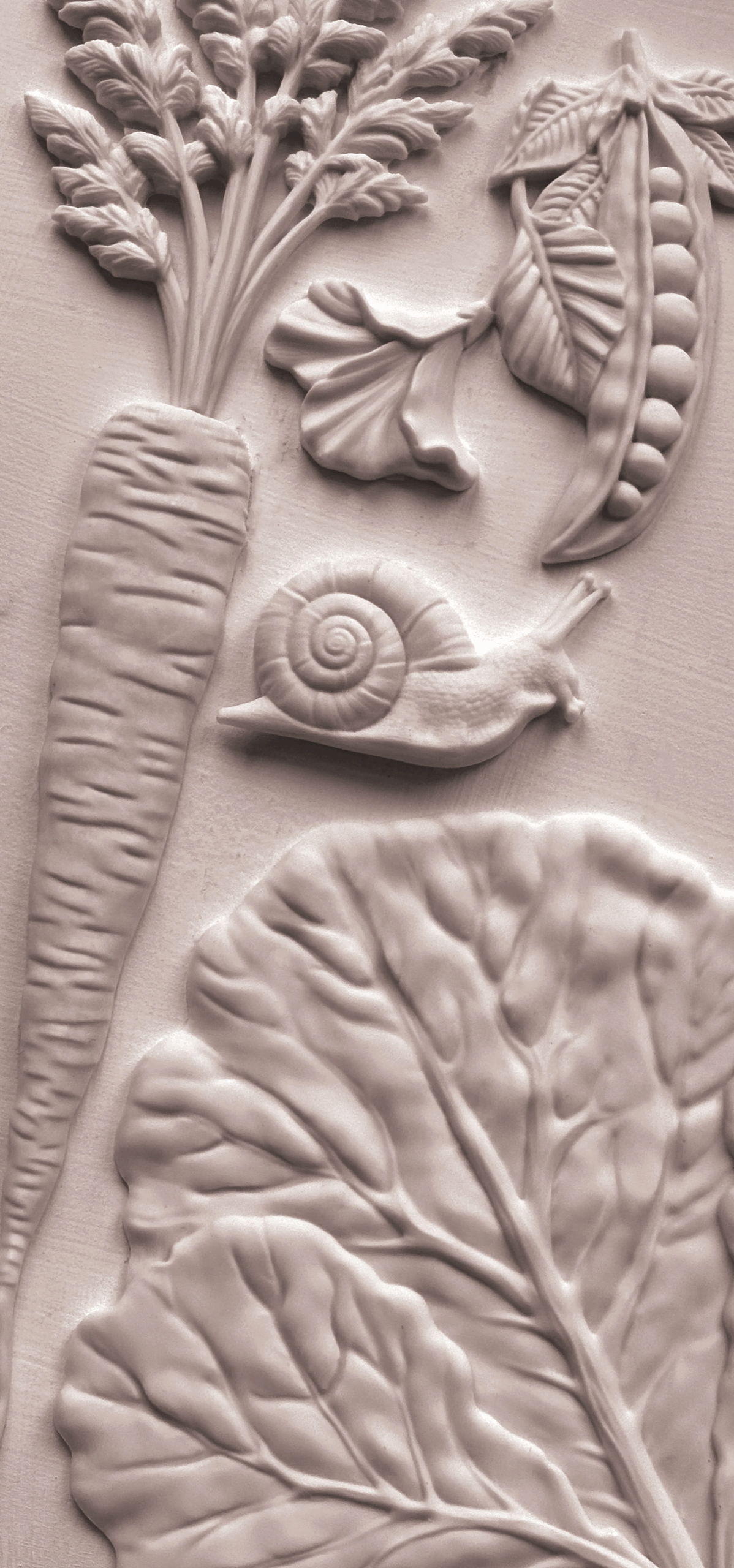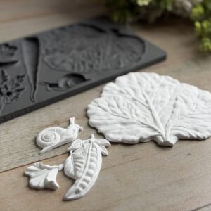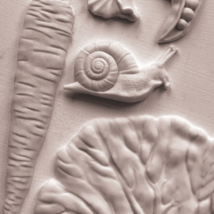 The 6×10” Spring Garden Mould is inspired by classic cabbage-leaf crockery, complete with the intentional veining that makes those pieces so beautiful in glaze or paint. The cabbage leaf was the starting point for this set, and with extra space in the mould, we added some favorite spring garden vegetables—plus a little snail companion (just for funsies!).